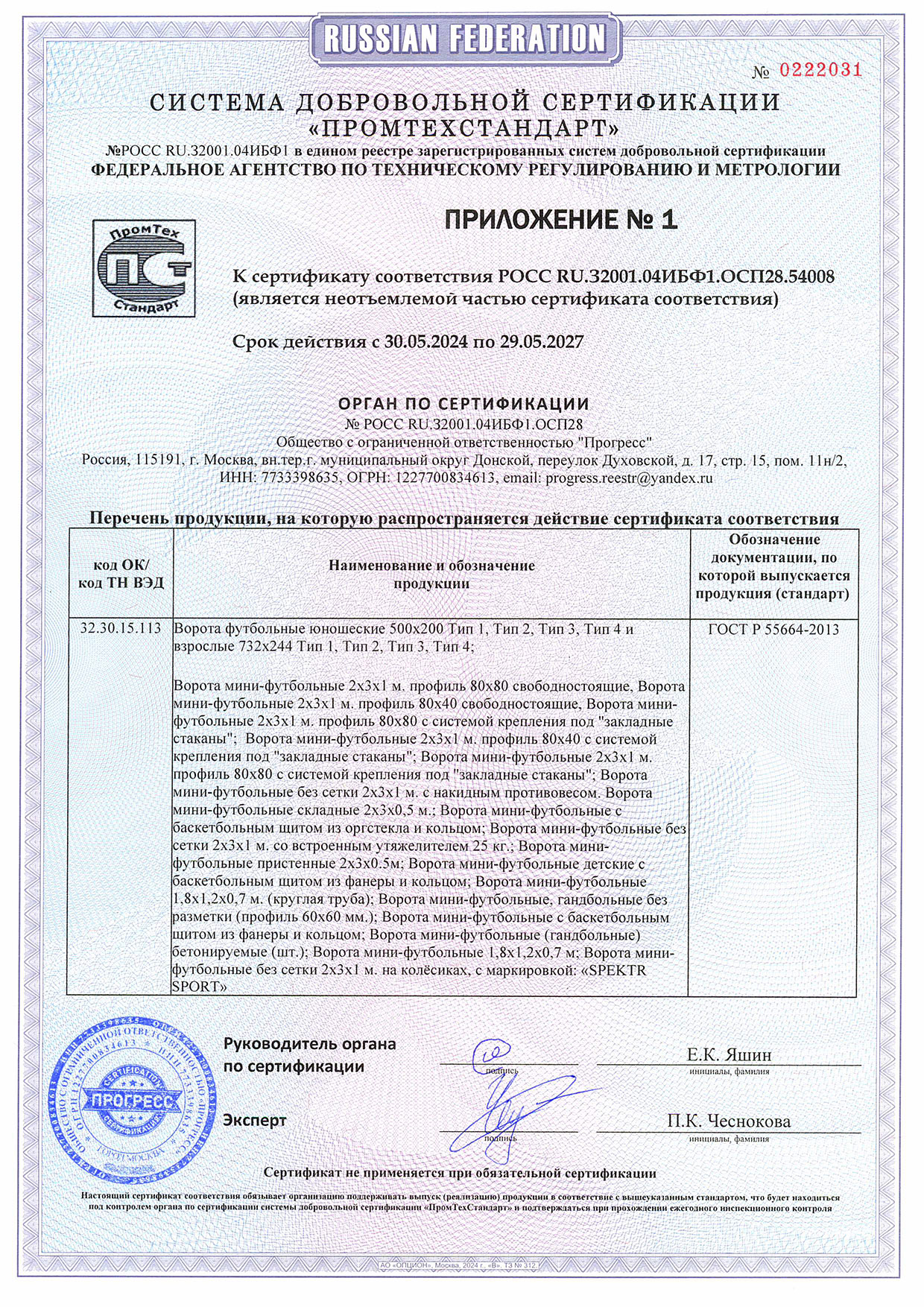 Сертификат соответствия инвентарь 1